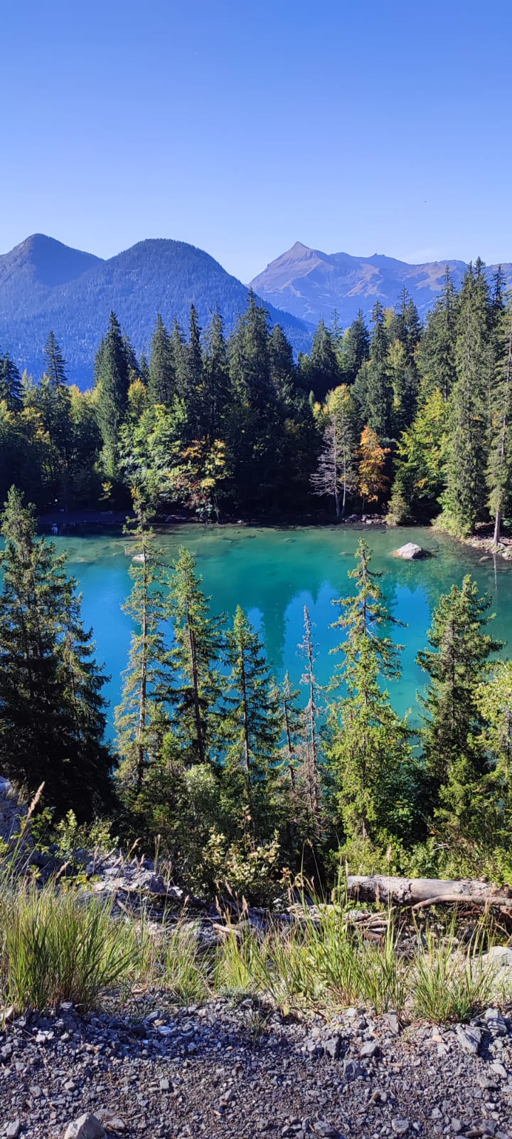 Nous pique-niquons à l’ombre des sapins face au Mont Blanc. Nous redescendons faire une pause près du Lac Vert